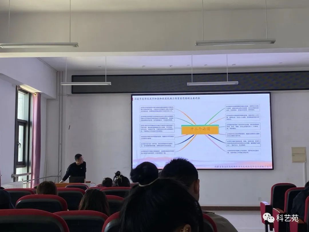 在此次培训课上,朱国富老师讲授了有关铸牢中华民族共同体意识的主要内容。讲述了三个学习目标和“十二个必须”逻辑体系中的四个关系和五项重点任务。