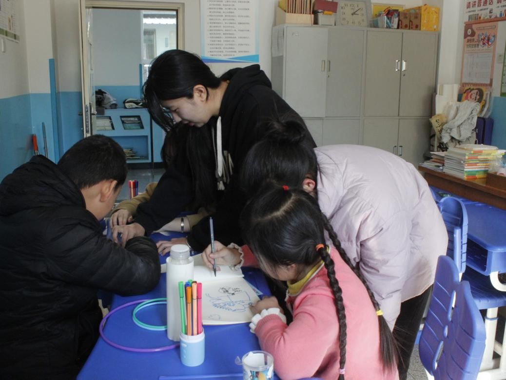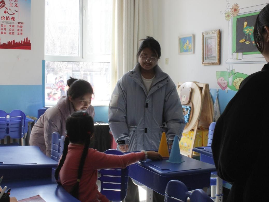 大学生带小朋友做游戏