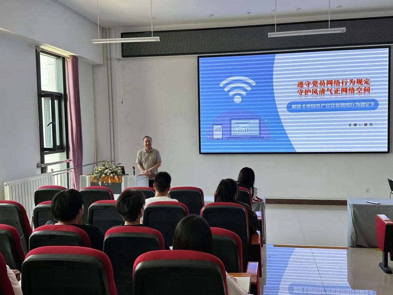 在明德楼B401进行解读《中国共产党党员网络行为规定》党课培训,本次培训主讲人是校党委宣传部副部长田芳,培训由英雄联盟博彩