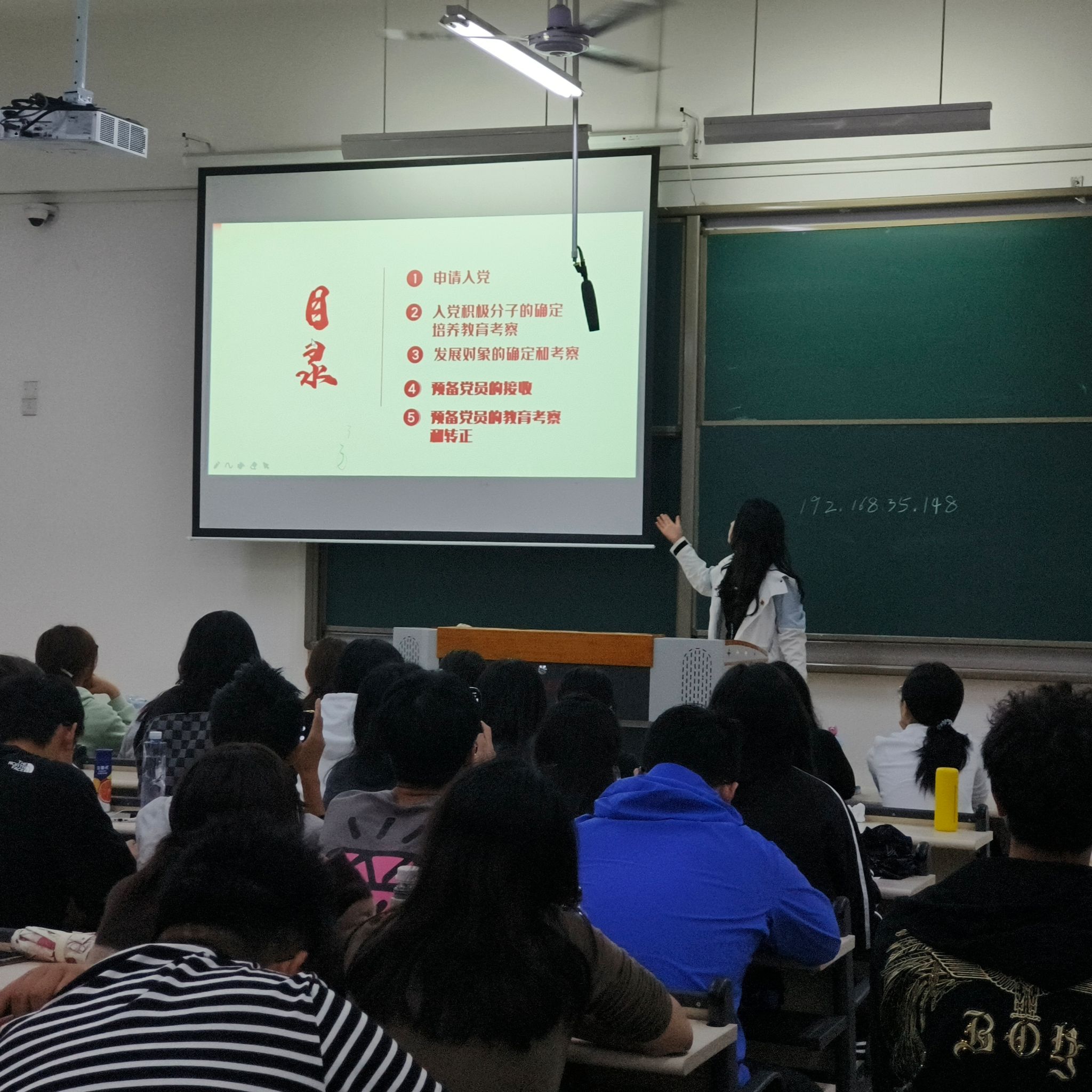 观影活动结束后,由团总支余坭烊为大家讲解入团各项事宜。