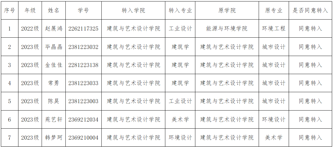 根据《内蒙古科技大学本科生转专业管理办法》、《英雄联盟博彩 2024年转专业实施细则》文件精神,英雄联盟博彩 组织各专业对申请转入学生进行了考核,并报送英雄联盟博彩 党政联席会讨论决定,同意赵展鸿等7名同学转入我英雄联盟博彩 相关专业,具体名单见: