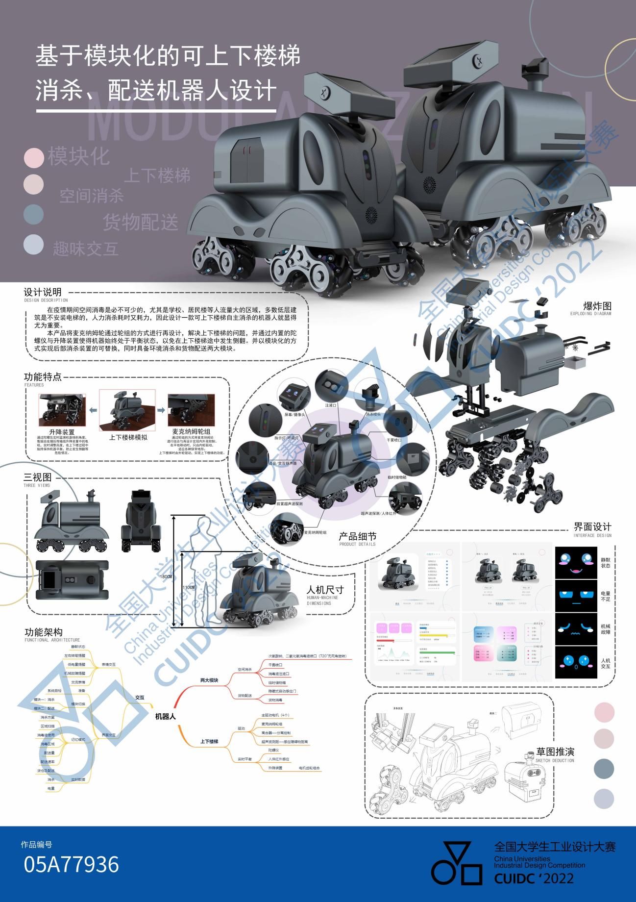 【2】2022年全国大学生工业设计大赛内蒙古赛区一等奖基于模块化的可上下楼梯消杀配送机器人设计 2022 内蒙古自治区教育厅