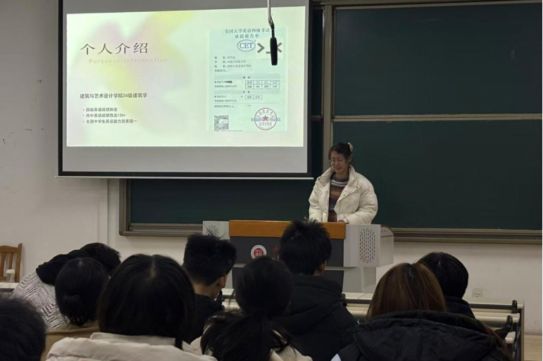 本次活动由24设计学研究生马德宇和24建筑学专业任雪儿两位同学进行讲解,他们分别就工业设计的考研经验以及四级考试经验进行了分享。让同学们正确把握专业的学习方向和未来规划,并为即将到来的四六级考试做出考前规划。