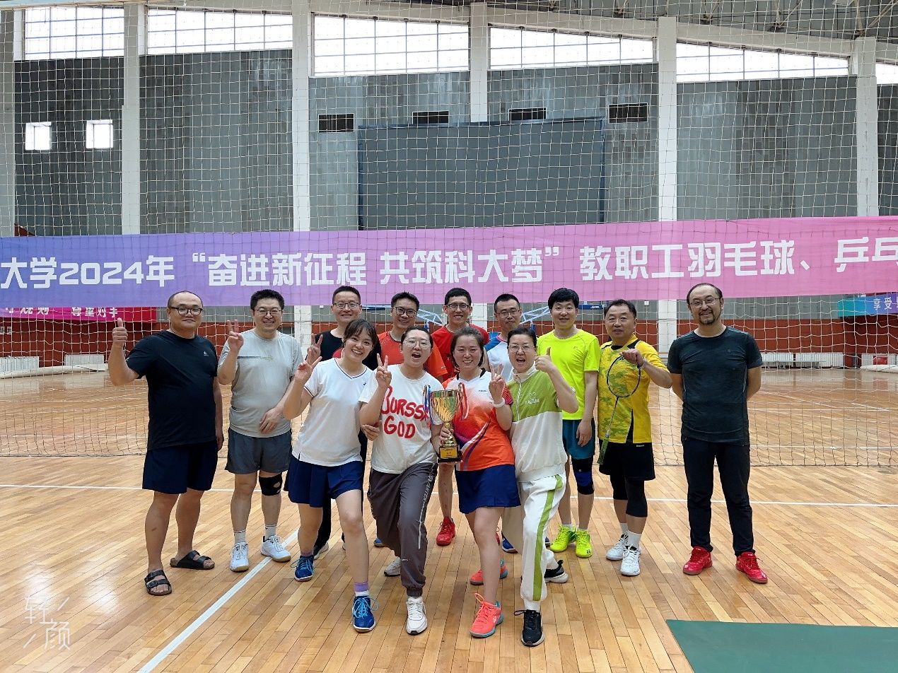 联队默契合作,勇夺羽毛球团体赛冠军。在教工乒乓球团体赛项目中取得了第六名的好成绩,以及乒乓球男子单打第五名。