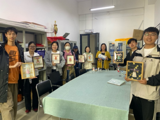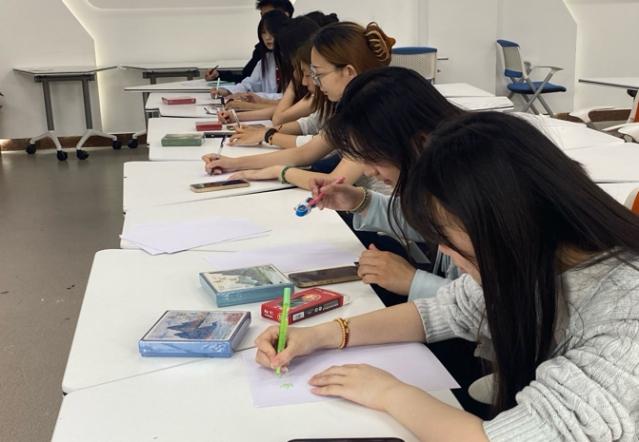 “漆夜迷踪”剧本杀以国家级非遗“平遥漆器”为背景,同学们化身民国学徒,通过破解“纹样暗号”“工序排序”等谜题,搜寻漆器工坊中的雕刀、螺钿残片等线索,还原“髹漆八法”的古老工艺。推理结束后,活动转入实践环节——同学们亲手调制天然大漆,在素面竹扇上绘制传统云纹,体验“贴金”“罩染”等技法。从烧脑解密到指尖创作,匠人“十年磨一器”的坚守精神贯穿始终。