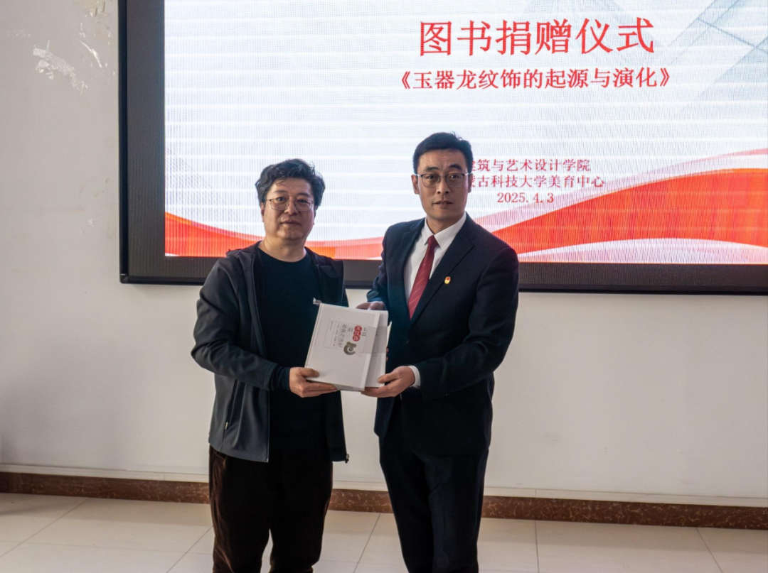 讲座结束后,王志钟向内蒙古科技大学美育中心捐赠个人珍藏艺术类书籍及文献资料,美育中心主任吴宇代表中心接受捐赠。