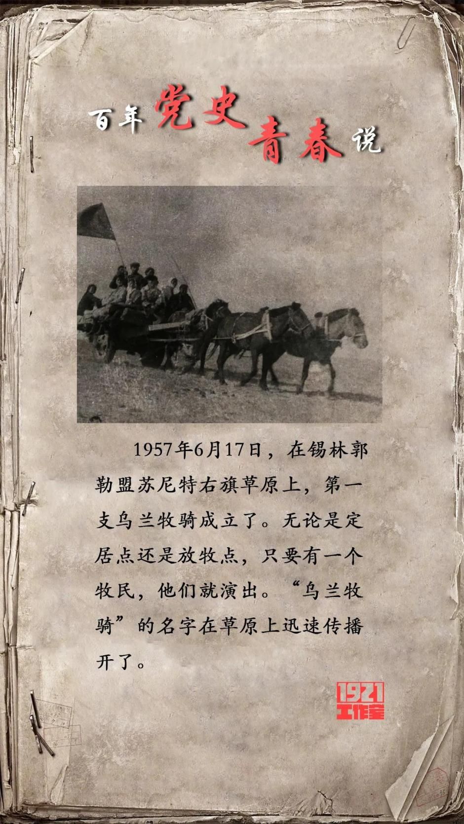 1957年6月17日,第一支乌兰牧骑在锡林郭勒盟苏尼特右旗成立。截至目前,乌兰牧骑已从最初的9个人、两辆勒勒车、四件乐器,发展到75支队伍、3000多名队员。