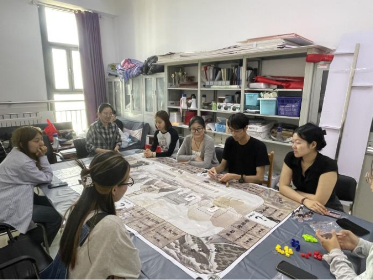 游戏棋盘以秦朝疆域为背景,参与者从“咸阳”出发,途经“渔阳郡”“长沙郡”等历史地标,最终抵达“咸阳宫”。每处地标设有知识问答或趣味任务,如“秦朝钱币名称”“孟姜女传说背景”等,让玩家在游戏中学习历史。活动融合历史、经济、艺术等多学科知识,建筑专业学生尝试绘制咸阳宫结构图,设计专业同学则思考如何将秦元素融入现代创作。活动让历史文化“活”起来,增强了同学们对传统文化的认同感与创新传承意识。