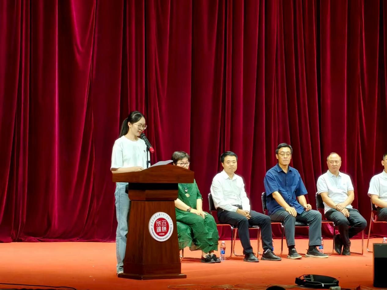 典礼开场,韩冬楠院长发表致辞,她首先对全体2025级新生表示热烈欢迎,接着介绍了包头地区以及学校的相关情况。同时,院长寄语新生要珍惜大学时光,在各专业领域深入钻研,成长为兼具专业素养与创新思维的优秀人才。