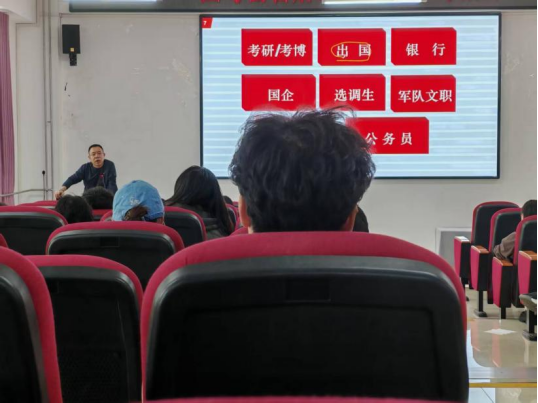 成功举办公务员及事业单位备考专题讲座,毕业年级意向报考学生积极参与聆听。