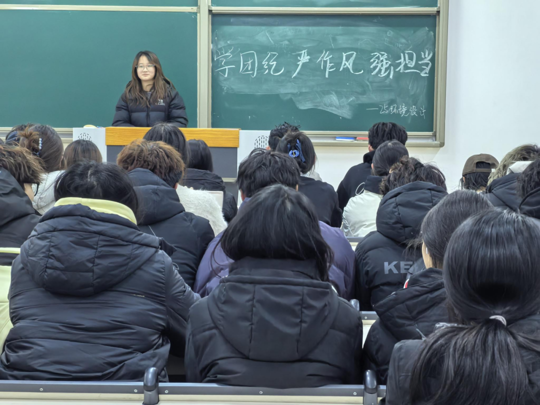 团支书大会上,张轩老师强调,团支书作为支部团员青年的带头人,需先学深悟透团纪要求,精准传达《中国共产主义青年团纪律处分条例(试行)》核心内容,切实发挥示范引领作用。各团支书也现场表态,将严格落实活动部署,带领支部团员深化纪律认知、锤炼优良作风,推动团员青年主动扛起青年责任,确保团纪教育落地见效、走深走实。