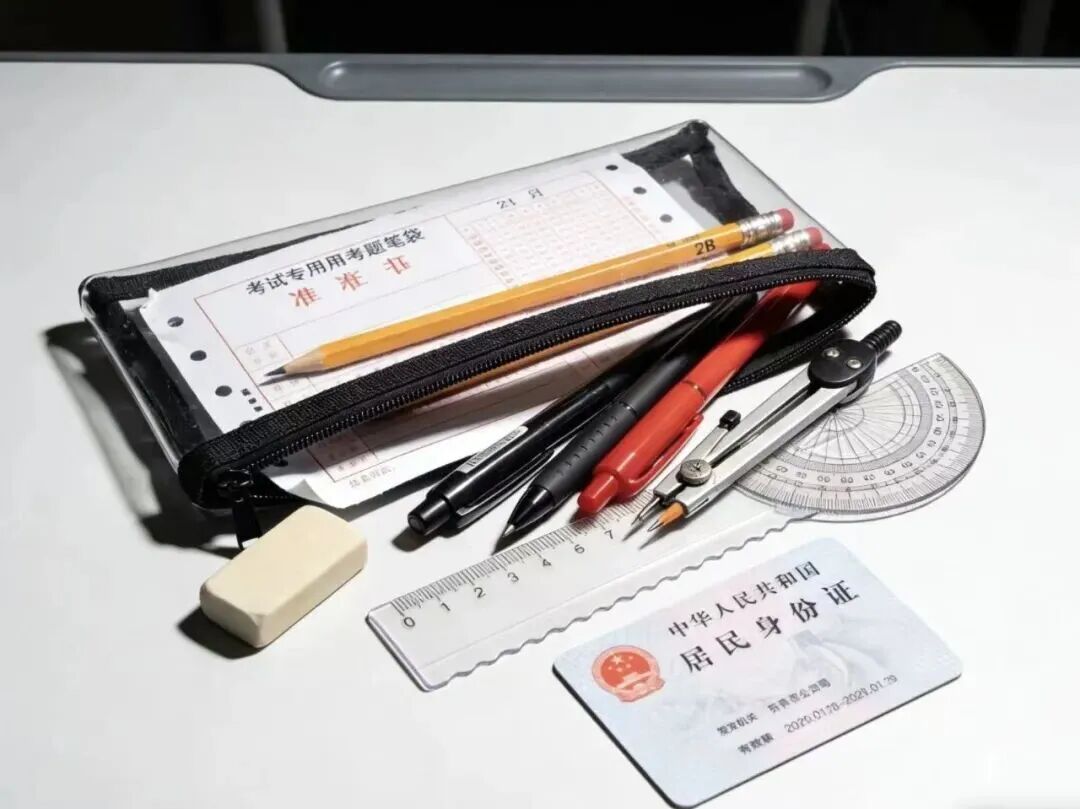 二、提前整理考试必备物品,包括身份证、准考证、2B铅笔、黑色签字笔、橡皮等,按科目需求准备特殊文具,杜绝携带手机、智能手表等违禁物品。
