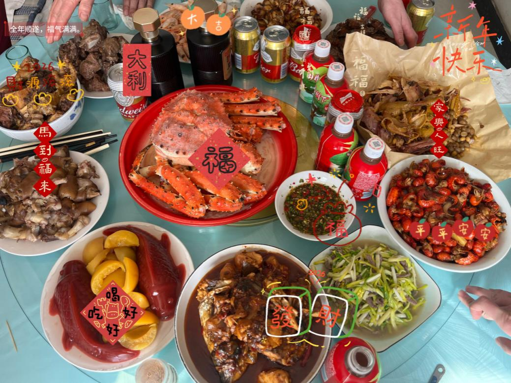 摄影大赛中,同学们用镜头定格了来自五湖四海的除夕年夜饭。一桌桌热气腾腾的佳肴,承载着阖家团圆的温馨与期盼;一张张充满烟火气的照片,展现了不同地域的年俗风情与家的味道。饭菜虽然各有差异,年味却始终同心同向,每一道菜品背后,都是家人的牵挂、岁月的温情与新春的美好祝福。