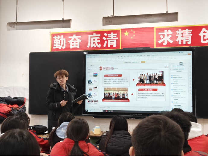 活动当天,团队以集中宣讲结合班级互动的形式开展宣传。宣讲中,成员们结合自身在内蒙古科技大学的学习生活经历,用生动鲜活的案例,从办学历史、学科专业特色、校园环境、文化生活及毕业生就业前景等方面,全面推介学校优势,重点解读了优势专业的培养目标与就业扶持政策,让学弟学妹们对内蒙古科技大学形成了直观、全面的认知。
