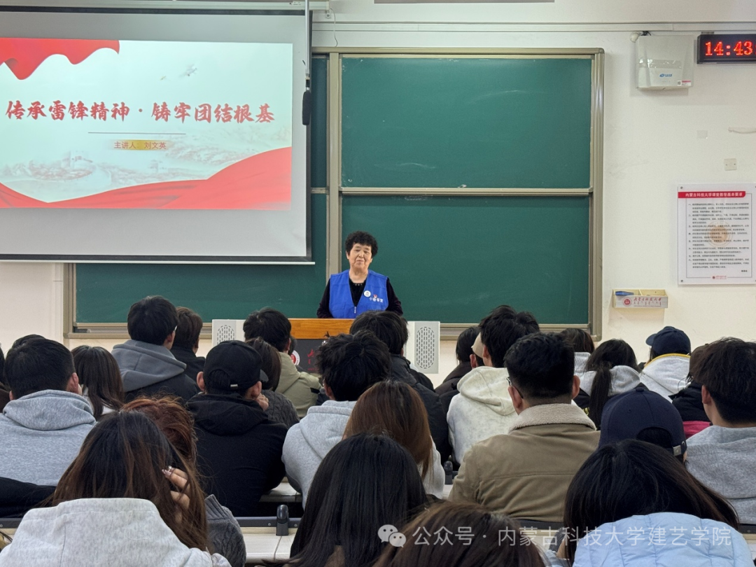 邀请丰产社区老党员刘文英同志于明德楼H208宣讲。引导大家感悟雷锋精神时代内涵,以奉献担当凝聚共识、增进团结,筑牢同心同德的思想根基,让雷锋精神在新时代落地生根、薪火相传。