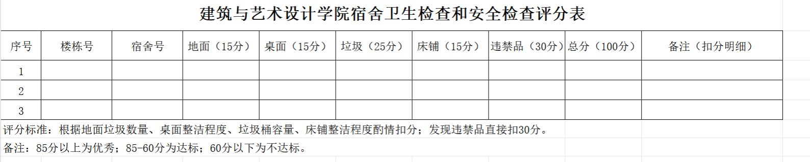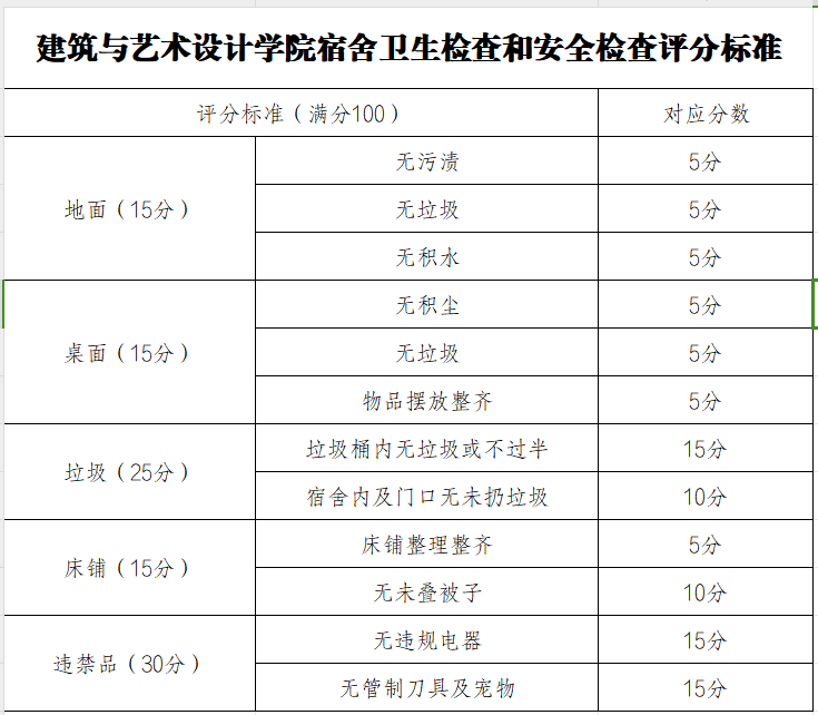 六、宿舍卫生检查和安全检查评分表及评分标准