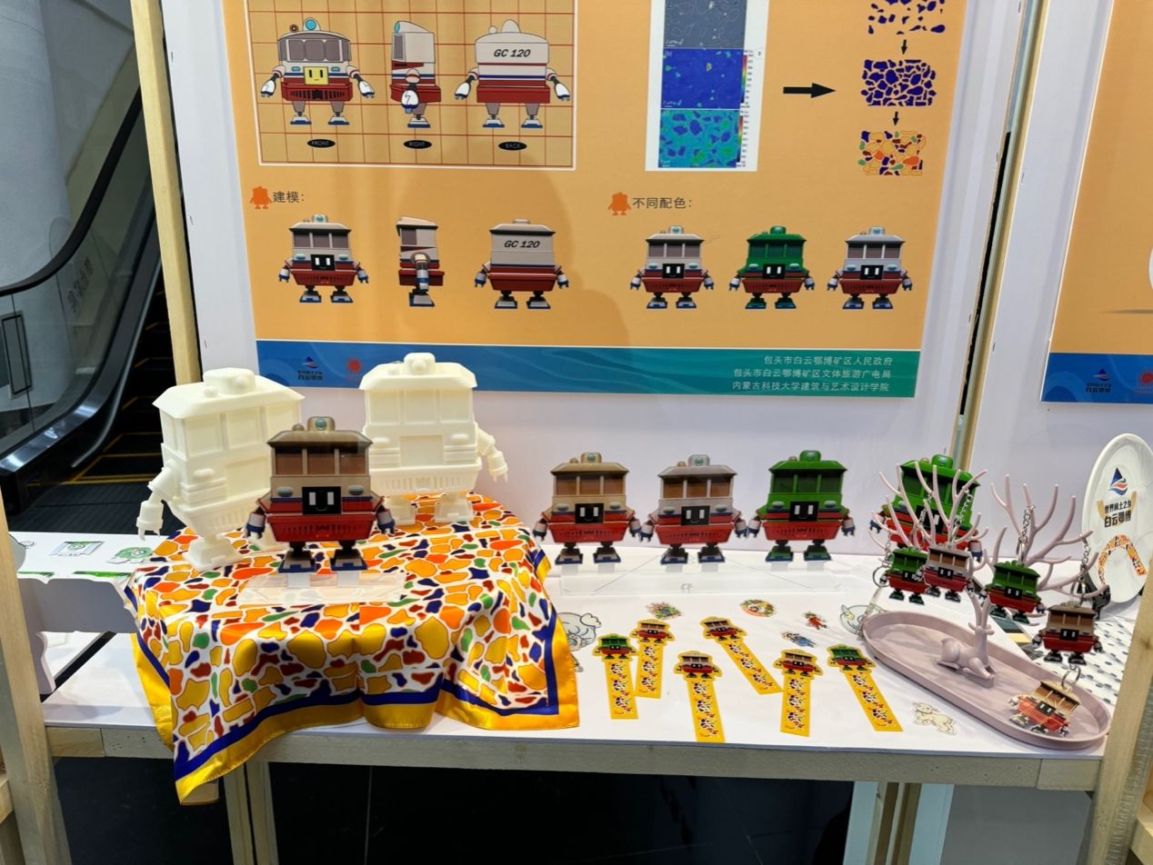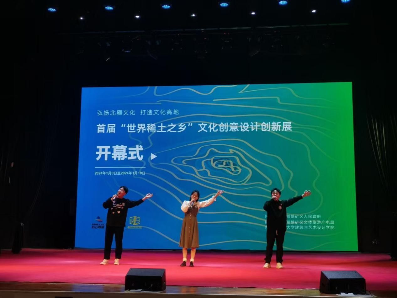 开幕仪式上,2023年10月开展的“世界稀土之乡文旅专列设计创新工作坊”活动中诞生的文艺作品,由中国音乐家协会会员、包头市音乐家协会副主席贺翔老师作曲,中国音乐家协会会员,包头市音乐家协会名誉副主席葛·娜仁托雅作词,为白云鄂博创作的歌曲《稀土故乡》《云端之上》首次亮相。开幕仪式后,领导及来宾参观展区并聆听了参展作品的指导教师及学生的讲解。