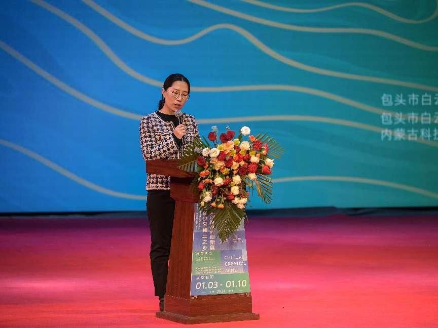 韩敏指出,本次活动是贯彻落实习近平文化思想,弘扬北疆文化,全力打造文化高地的重要举措,也是长效融合推动地区文旅事业创新发展的一次生动实践。本次展览依托高校在文化产业、艺术与创意、材料与生态、可持续发展等领域的人才优势和创作实力,将白云鄂博矿区的红色文化、矿山文化、稀土文化等元素融入作品,给大家呈现一场文化创作盛宴,这是对白云鄂博矿区区文旅产业高质量发展的有力推动,更是为打造文化高地、地区文化品牌建设的有益探索。